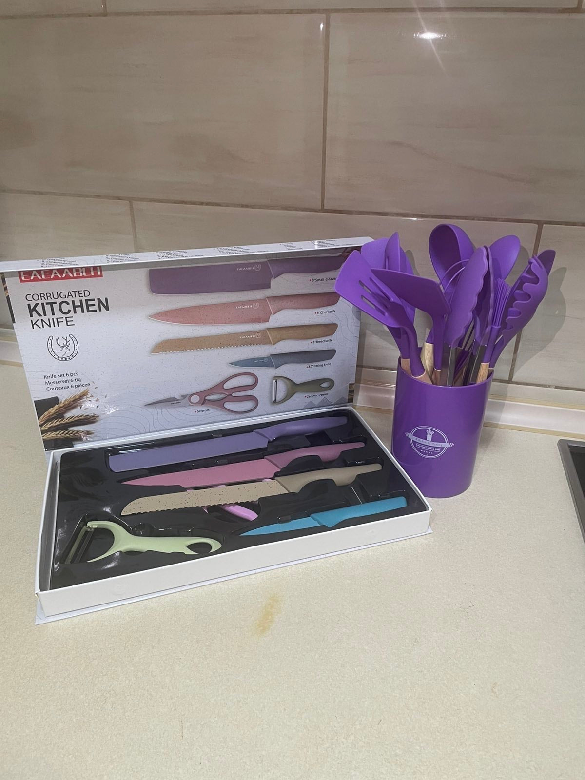 Sadrži kompletan izbor kuhinskih noževa i silikonskog pribora koji su idealni za svakodnevnu upotrebu.