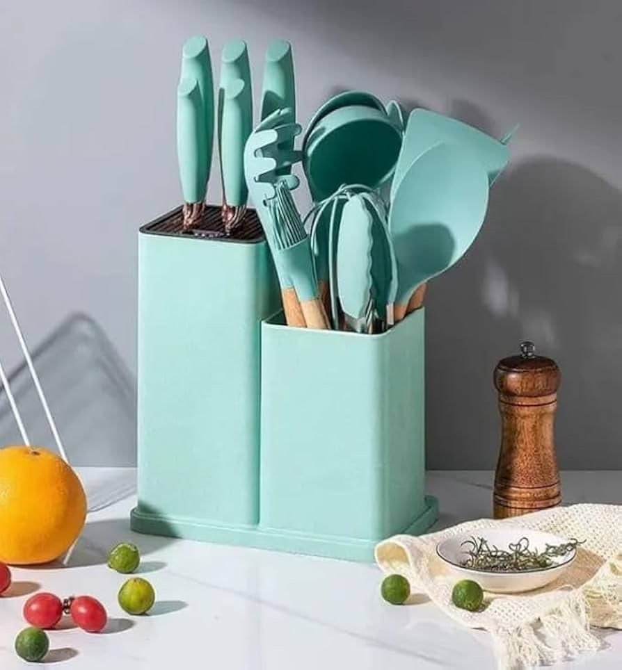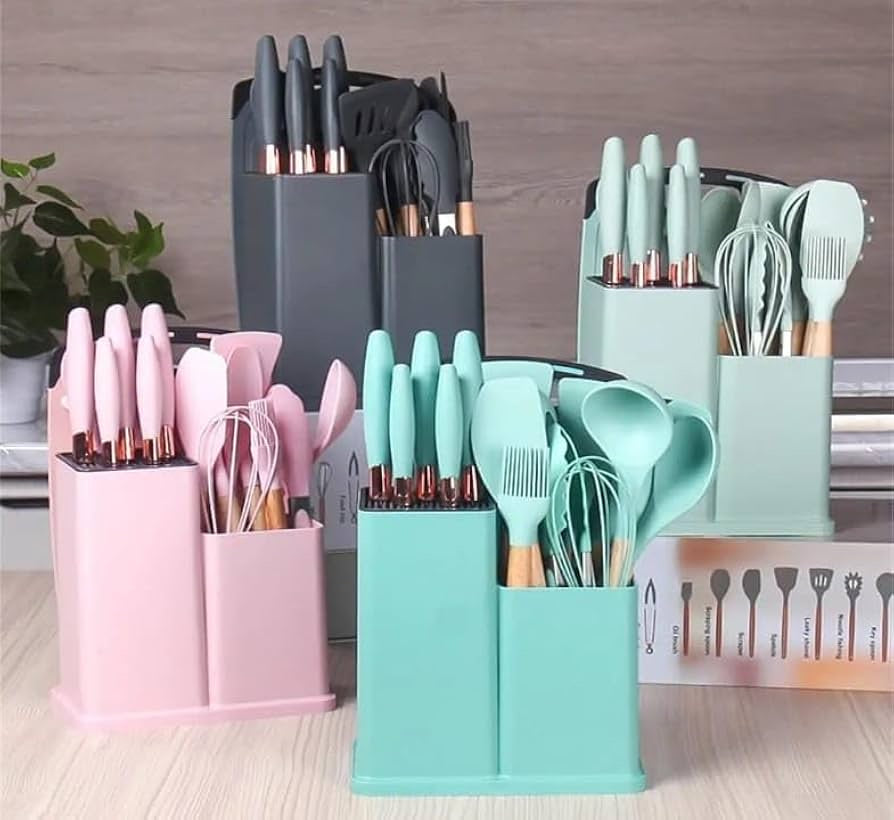 Ispunjava sve potrebe za kuhinju, 19-u-1 kuhinjski set sadrži set noževa, silikonski set kuhinjskog pribora i kuhinjske dodatke koji će zadovoljiti vašu maksimalnu potražnju, budite vaš pomoćnik u kuhinji.